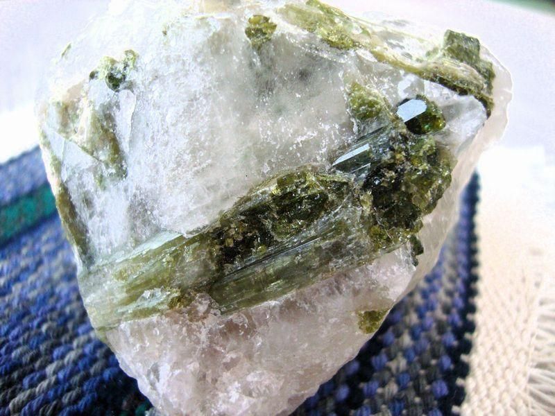 グリーントルマリンが水晶を母岩として結晶しています。