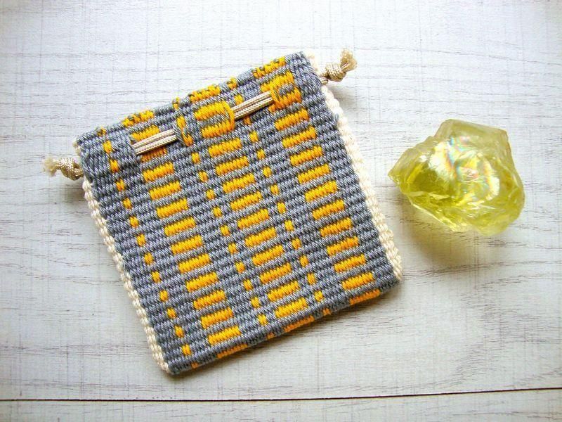 手織りの生地の巾着袋。