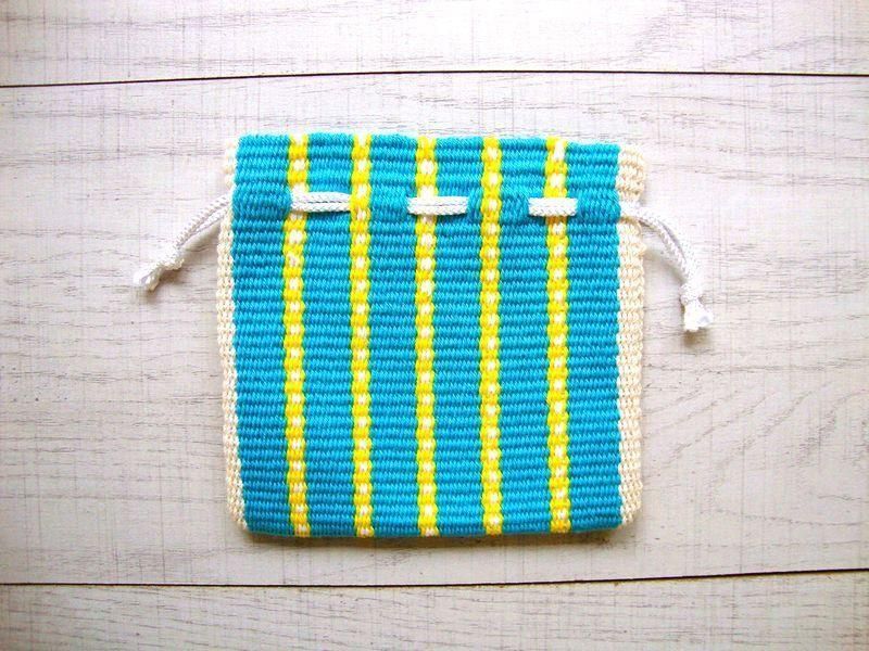 手織りの生地の巾着袋。